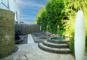 Genieße Erholung pur in unserem gepflegten Saunagarten und kühle dich nach einem heißen Saunagang in unserem Tauchbecken ab.