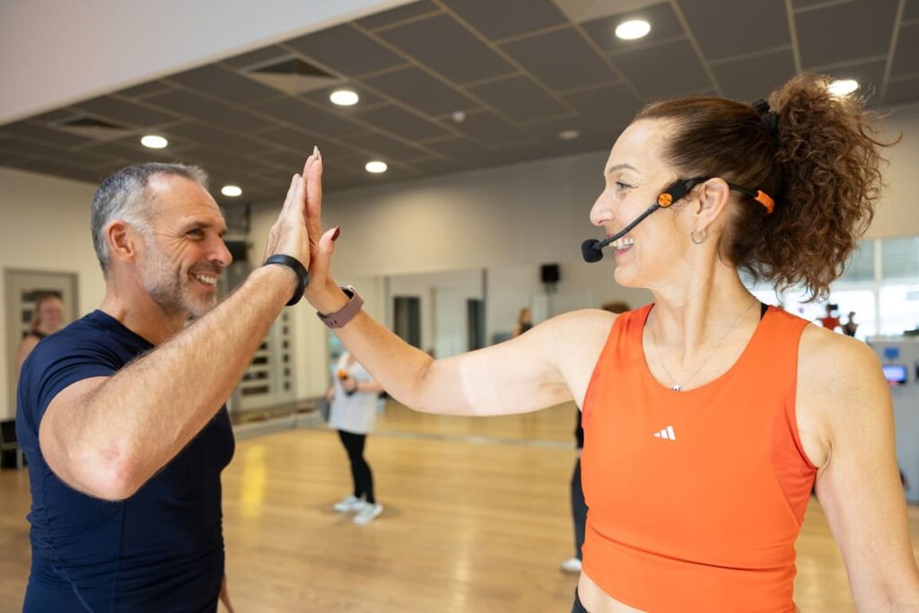 Musik, Gruppe und Flow wirken wie ein Stimmungsbooster – du gehst mit einem Lächeln aus dem Kurs.